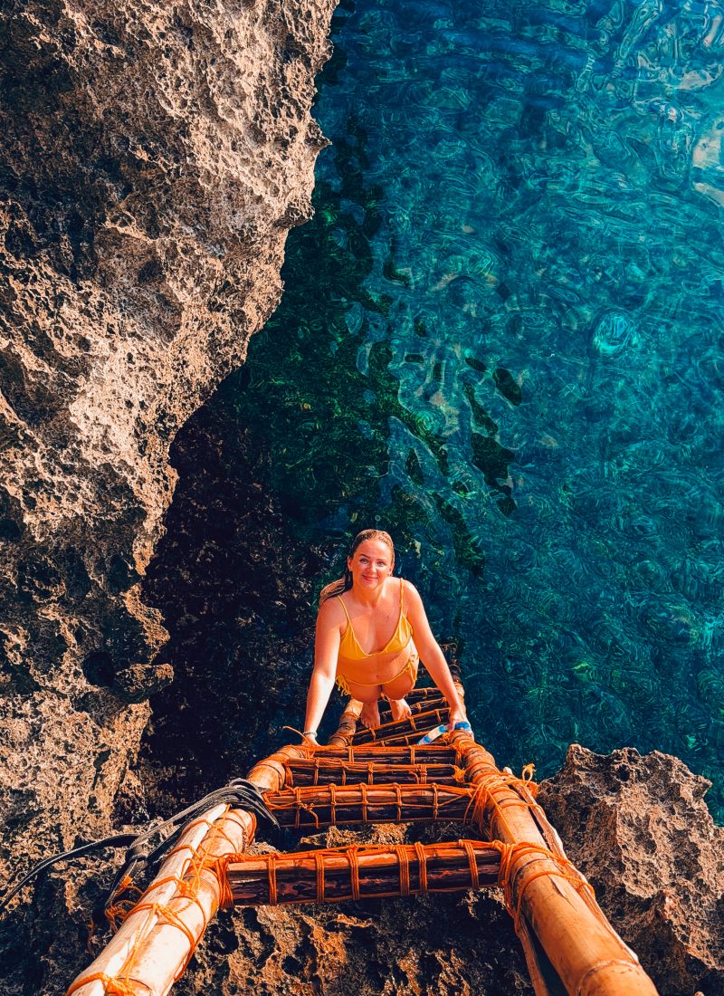 If you don’t feel like jumping, there’s also a bamboo ladder leading down into the sea. I took my snorkel with me and saw some nice fish too.